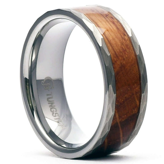 JIM Hammered Tungsten Wedding Band with Whiskey Barrel Wood