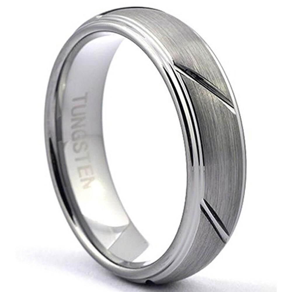 - Beveled Diagonal Grooves Tungsten Wedding Band, Unisex