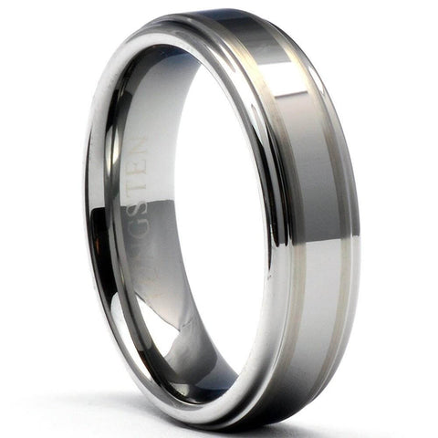WATAR 6mm Tungsten Carbide Wedding Band Two Stripes Shiny Steps
